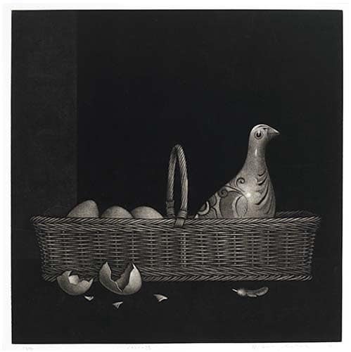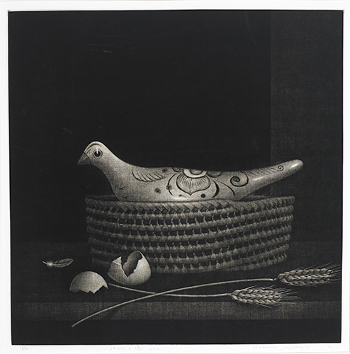 Nobuo Satoh, Mekishiko no hato I, II, (Mexican Dove I, II), 1972, Mezzotint, Gift of Eleanor Schmidt, 2012.21.1, 2012.21.2